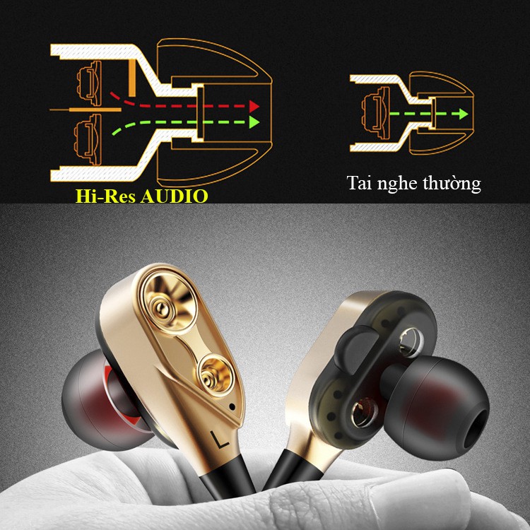 Mô tả sản phẩm Tai nghe Loa Kép Hi-Res AUDIO - Tiếng Bass Sâu (K8)Công nghệ Loa KÉP cho âm Bass Mạnh gấp đôi