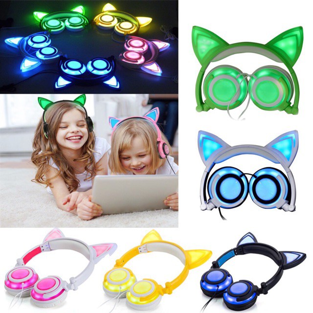 Tai Nghe Mèo Đèn Led Phát Sáng Có Thể Gập Lại Nhấp Nháy Glowing - Dùng Cho Điện Thoại, LapTop, PC -DC4320