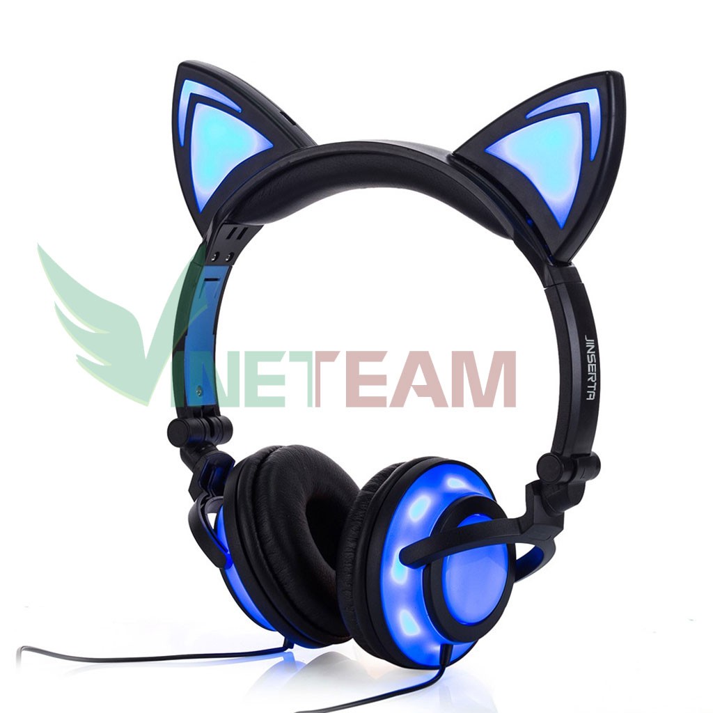 1. Cat Tai Nghe Tai với Phát Sáng Màu Xanh Đèn.