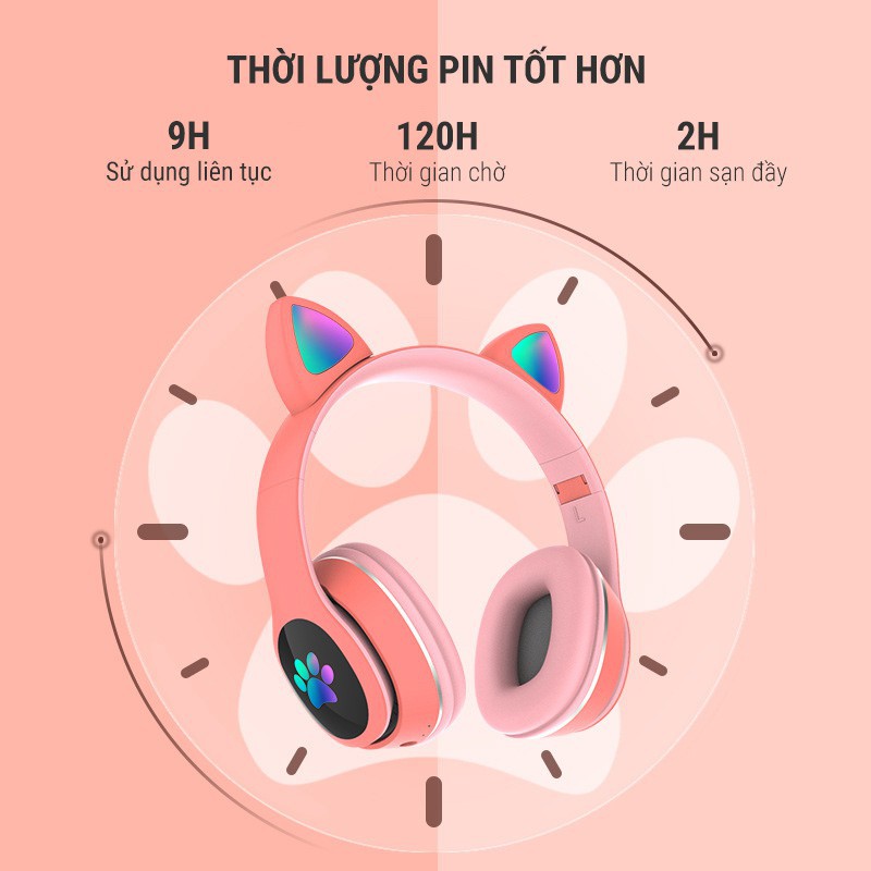 Thiết kế tai mèo dễ thương & Đèn LED nhấp nháy: Tai nghe Bluetooth dễ thương nổi bật với thiết kế tai mèo đáng yêu và đèn LED 7 màu lạ mắt. Tai nghe có thiết kế theo phong cách tiệc tùng và thích hợp cho các buổi họp mặt gia đình, đám tiệc, lễ hội của trẻ em, Giáng sinh, Halloween.