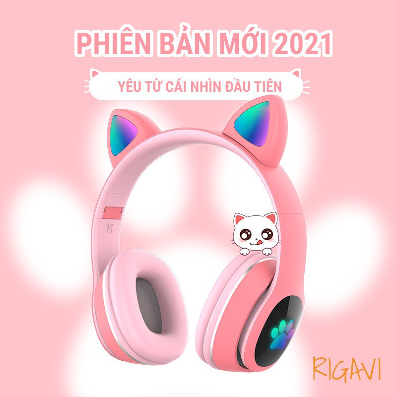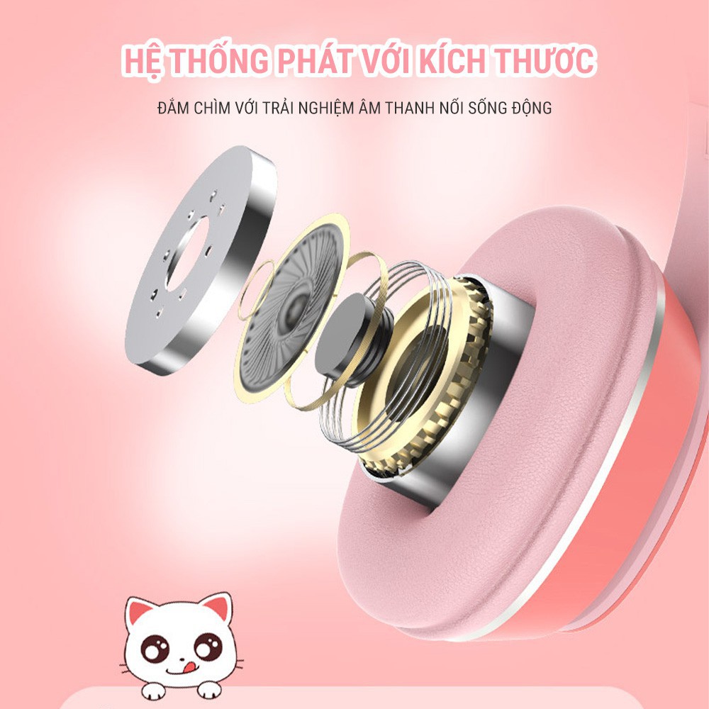 Tai nghe mèo VZV 28M – đèn led – Kết nối bluetooth 5.0 - headphone có micro – điều chỉnh âm lượng có cổng AUX, SD card