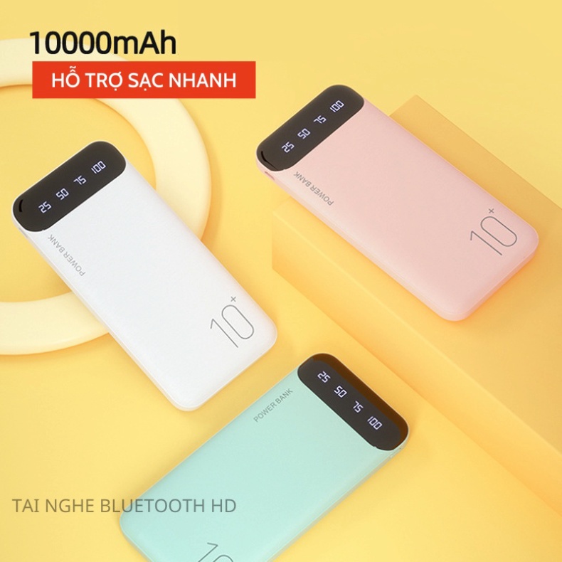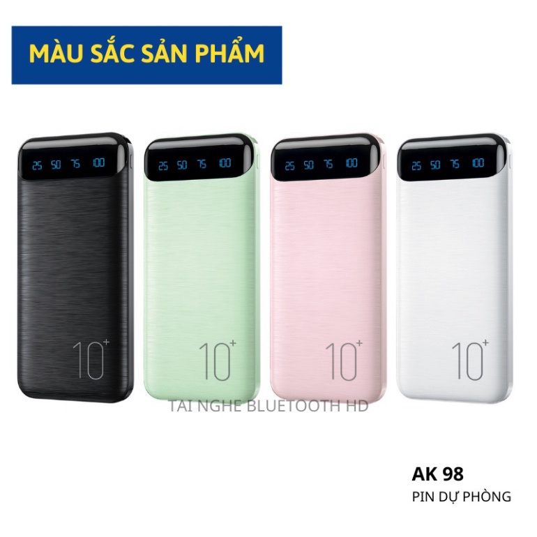 Tai nghe nhét Sạc dự phòng AK98 10000mAh 2 cổng USB hỗ trợ sạc nhanh màn hình LED hiển thị pin dự phòng bảo hành 6 tháng
