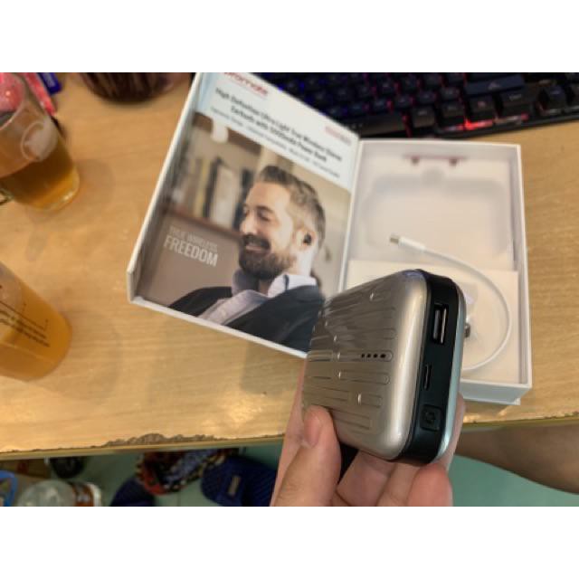 Điện Thoại & Phụ Kiện > Phụ kiện > Sạc dự phòng & Pin > Sạc dự phòng || Tai Nghe Promate PowerBeat Bluetooth Không Dây Kiêm Sạc Dự Phòng 5000mAh - Hàng Chính HãngCòn hàng