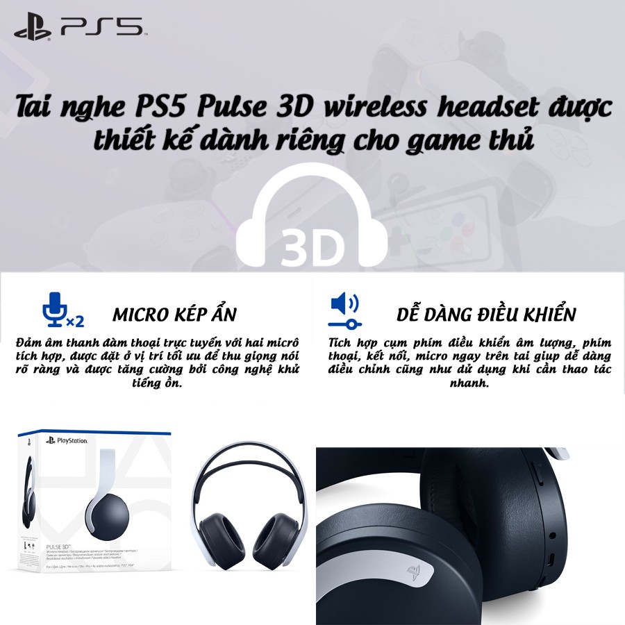 Ở thời điểm hiện tại nếu đã may mắn sở hữu được 1 em PS5 chính hãng Sony VN thì shop xin chúc mừng anh em ạ.Tuy nhiên thật là thiếu sót nếu bạn vẫn chưa có bộ phụ kiện Tai nghe PS5 Pulse 3D Wireless Headset xứng tầm với cỗ máy PS5 đang sở hữu.Một chiếc tai nghe mới tinh để đáp ứng các công nghệ âm thanh 3D tiên tiến nhất trên máy chơi game PS5.