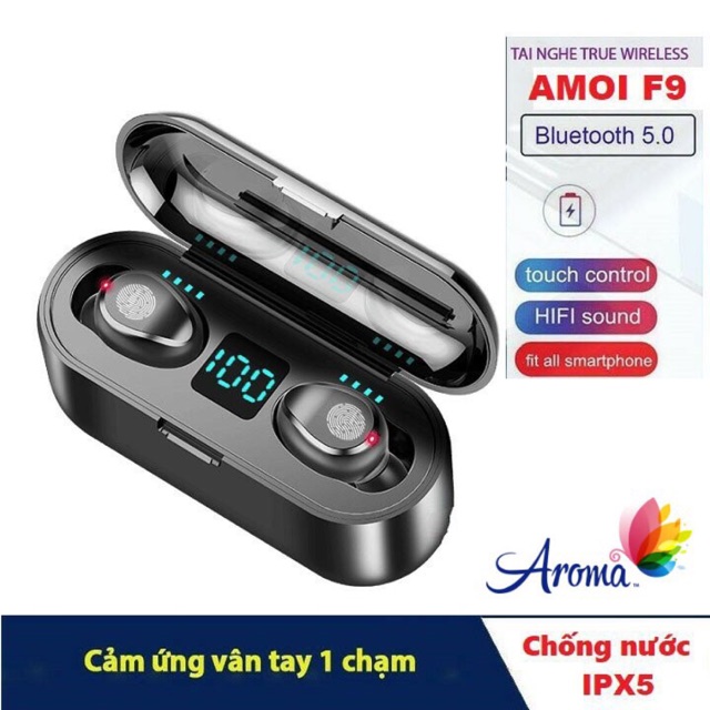 Tai nghe true wireless AMOI F9 | bản QUỐC TẾ | nút cảm ứng | Bluetooth 5.0 | Pin 280 giờ | sạc dự phòng 2019 5.0