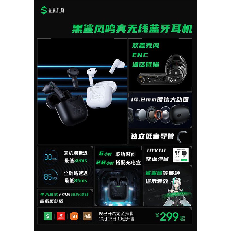 - Sản phẩm này sử dụng kết nối Bluetooth 5.2 cùng với công nghệ độ trễ cực thấp do công ty tự phát triển. Kết hợp với điện thoại Black Shark 4S, độ trễ của tai nghe có thể giảm xuống chỉ còn 30 ms.