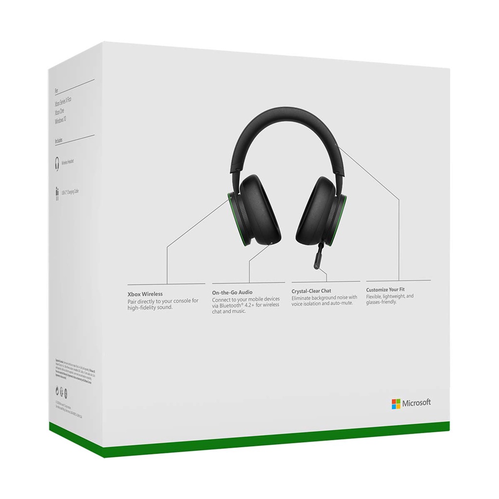+Microsoft Xbox Wireless Headset tai nghe over-ear (chụp tai) được thiết kế để tương thích với máy chơi game Xbox One, Xbox Series X/S, PC và thiết bị di động có kết nối Bluetooth.
