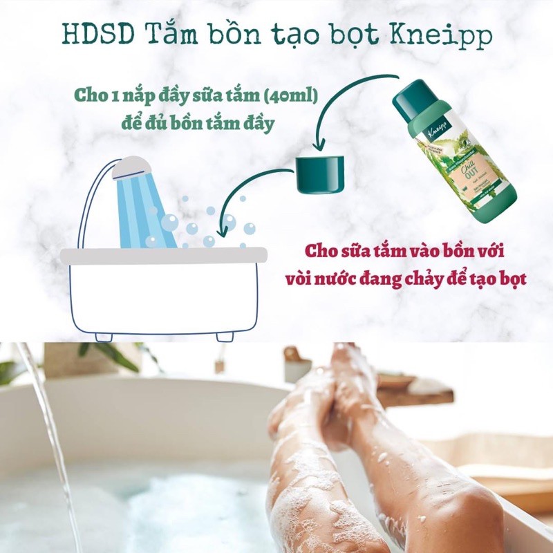 🔹Sữa tắm bồn tạo bọt thơm Kneipp® giúp bạn thư giãn sau một ngày làm việc dài🔹100% tinh dầu thiên thiên giúp da bạn mềm mại, mịn màng sau khi tắm. Mùi hương nhẹ nhàng giúp giải toả căng thẳng