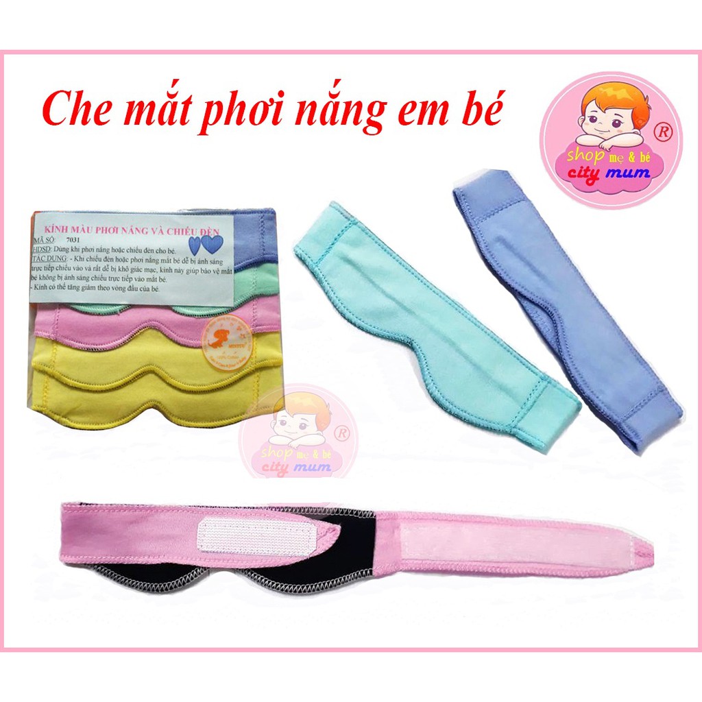 Che mắt tắm nắng, che mắt chiếu đèn vàng da cho trẻ sơ sinh, giúp bé tránh bị vàng da và tránh còi xương mà không bị tia cực tím ảnh hưởng xấu đến mắt bé.Các mẹ lưu ý: