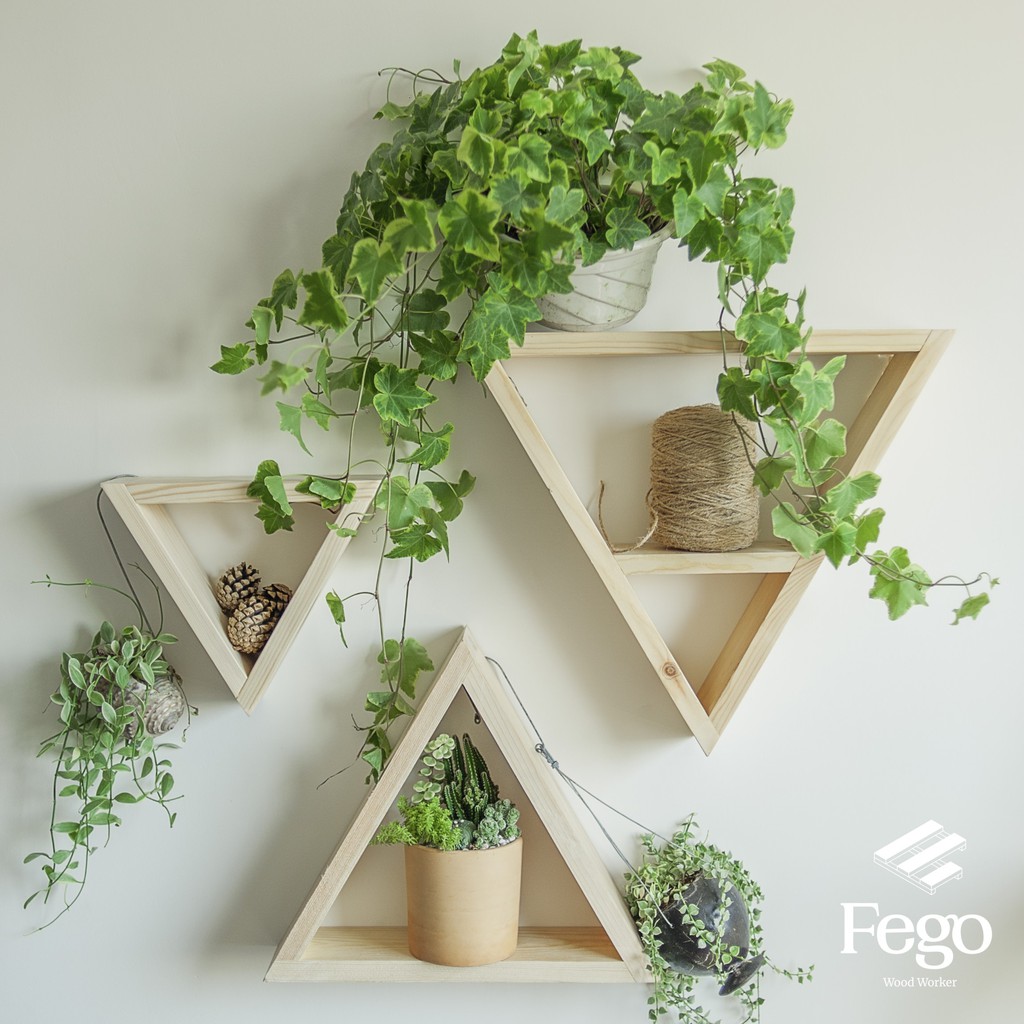 Tam giác treo tường / Kệ gỗ thông trang trí Fego
