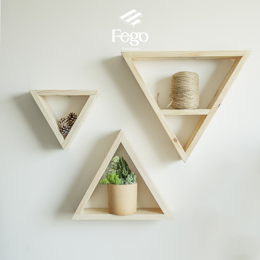 Nhà cửa & Đời sống > Nội thất > Kệ & Giá || [Mã LIFEMALL253 giảm 100K đơn 250K] Tam giác treo tường / Kệ gỗ thông trang trí FegoCòn hàng