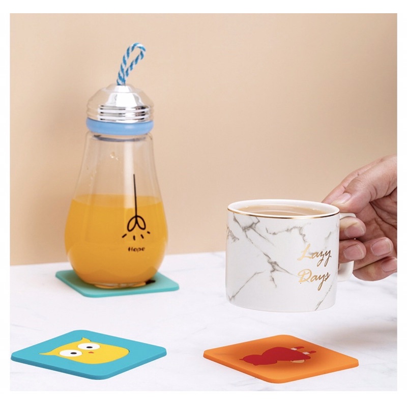 Tám lót cốc chén bằng cao su hình con vật ngộ nghĩnh