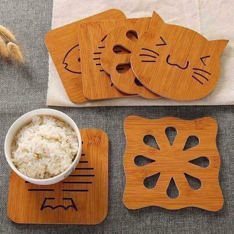 1. Sản phẩm dùng để lót xoong, nồi, chảo, bát đĩa, cốc chén … được làm bằng gỗ giúp cách nhiệt giữa xoong, nồi và mặt bàn hay tủ đựng thức ăn hiệu quả.