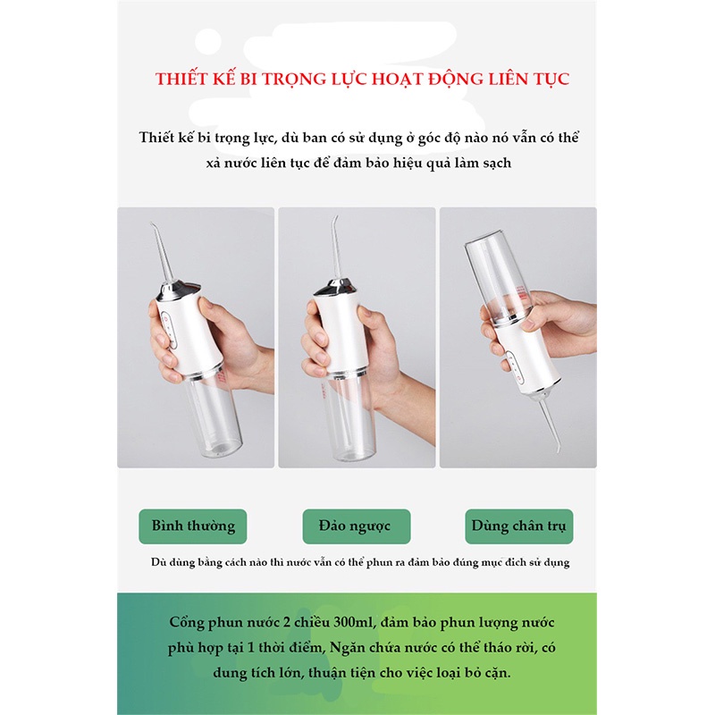 - Thông số sản phẩm: Máy tăm nước vệ sinh răng miệng 3 chế độ