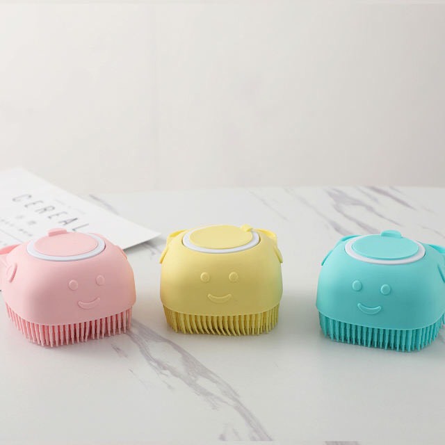 - Vừa có ngăn đựng xà phòng, ấn một cái xà phòng ra đều cùng với nhịp lau kì cọ của tay luôn ạ
