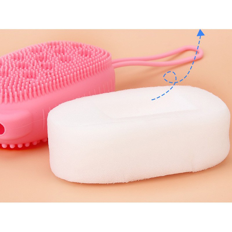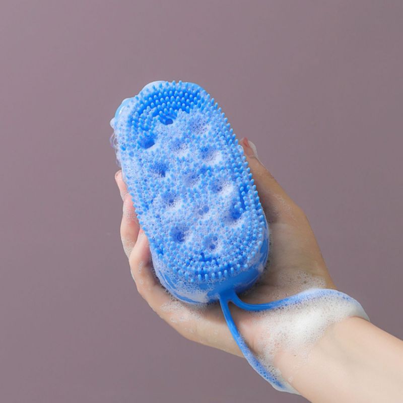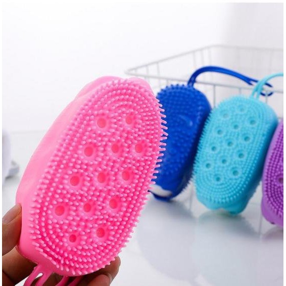 Bông Tắm Silicon Tạo Bọt gồm 2 mặt, 1 mặt tẩy da chết Massage body, 1 mặt tạo bọt. Có dây treo vô cùng sạch sẽ✔️Bông Tắm Silicon Tạo Bọt được làm từ chất liệu silicone cao cấp – Platinum Silicone với đặc tính kháng khuẩn giúp ngăn chặn hình thành vi khuẩn trên bông tắm.