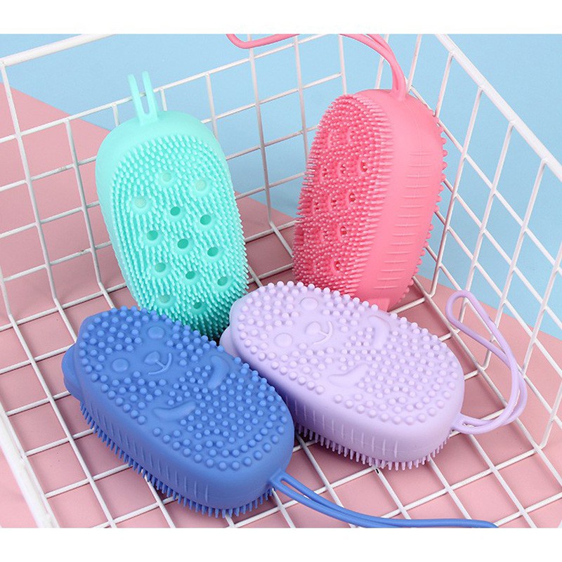 Bông Tắm Silicon Tạo Bọt gồm 2 mặt, 1 mặt tẩy da chết Massage body, 1 mặt tạo bọt. Có dây treo vô cùng sạch sẽGiá JAK