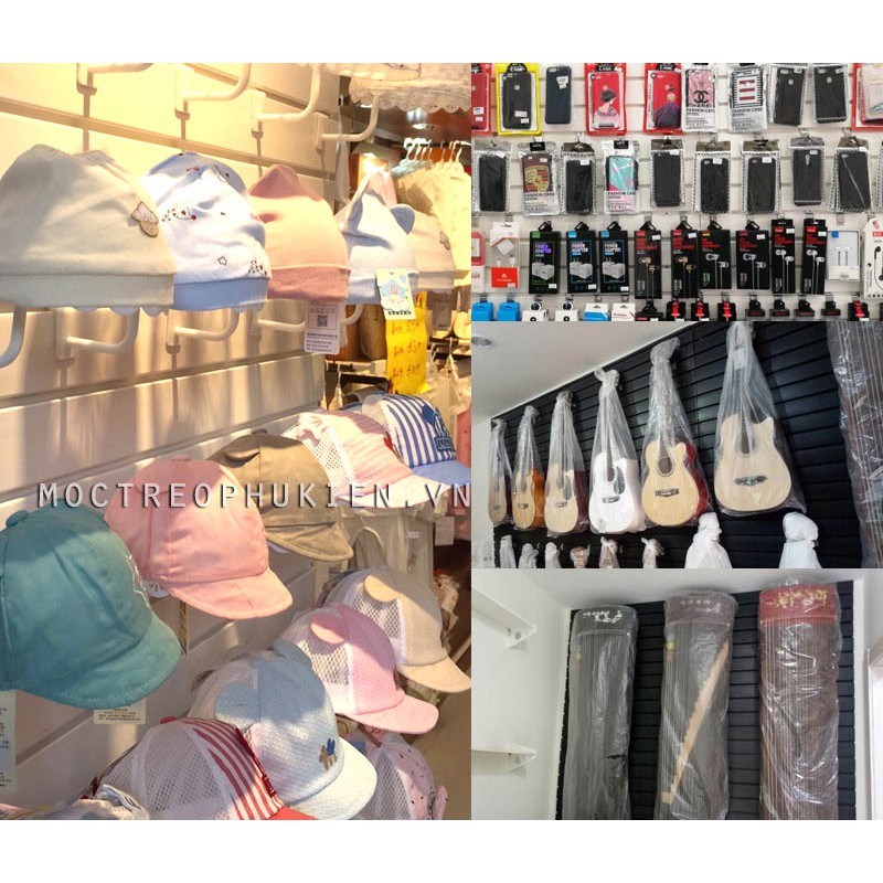 TẤM SLATWALL NHỰA PVC, SLATWALL PANELS LÀM KỆ TRƯNG BÀY HÀNG HÓATấm rãnh nhựa PVC cài móc treo hàng trưng bày