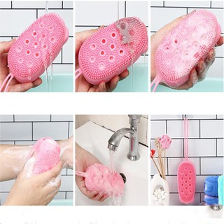 Bông tắm silicon 2 mặt, 1 mặt tẩy da chết Massage body, 1 mặt tạo bọt.Có dây treo vô cùng sạch sẽ