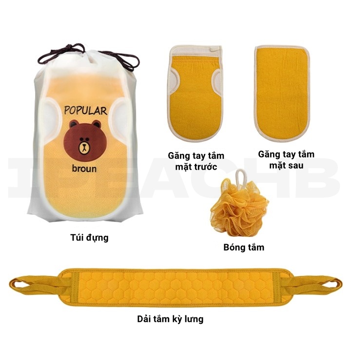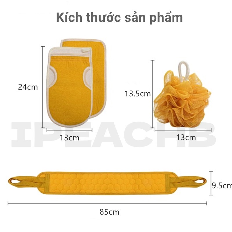 [Bộ 3 dụng cụ tắm] [ dải kỳ lưng + găng tay tẩy té bào chết + Bông tắm]