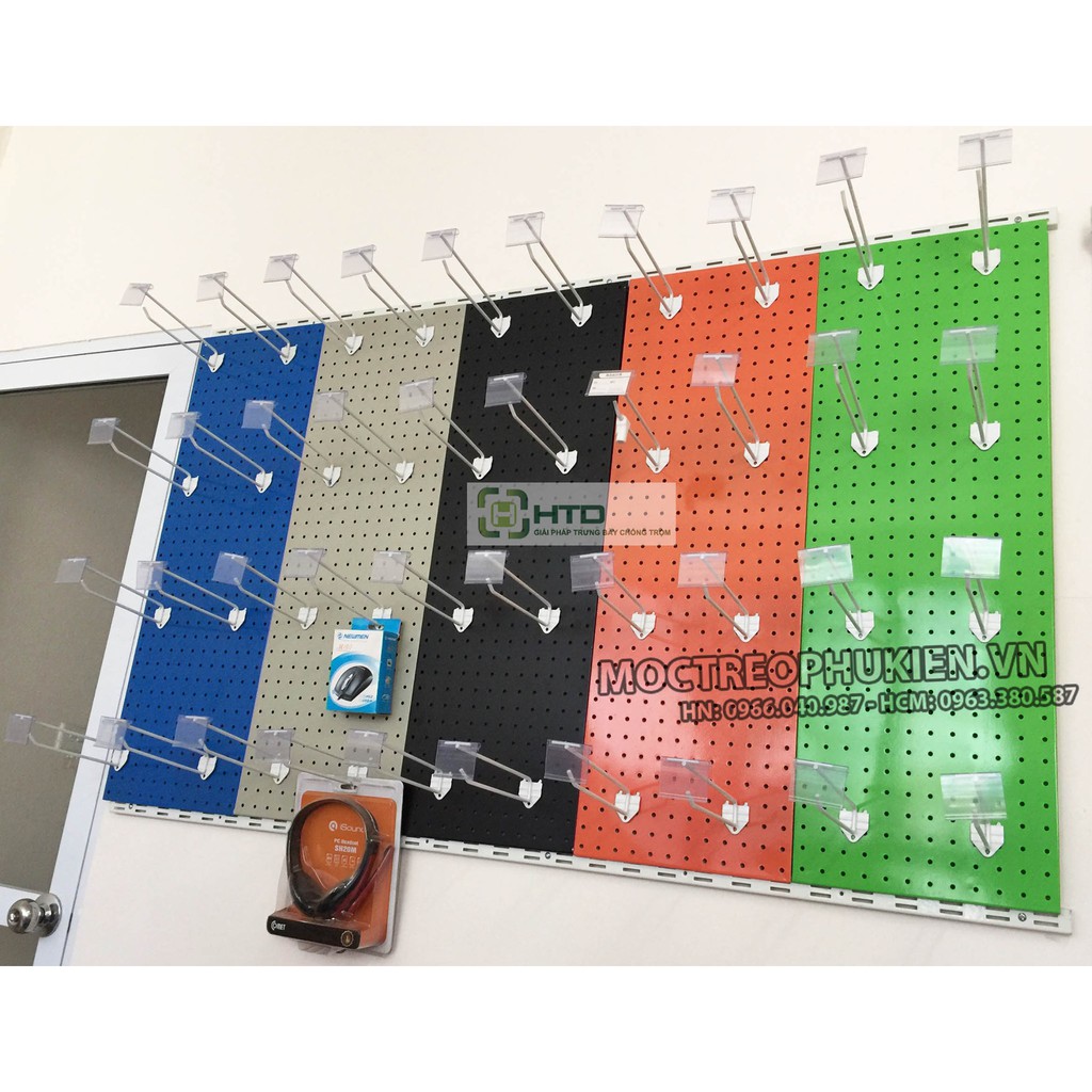 Được sử dụng rộng rãi tại các cửa hàng phụ kiện điện thoại, linh kiện điện tử, shop thời trang, cửa hàng trang sức, phụ kiện, cửa hàng trưng bày vật dụng cơ khí. Tấm thép đục lỗ của HTD VIET NAM có nhiều màu sắc khác nhau, giúp cho khách hàng có nhiều lựa chọn phong phú cho cửa hàng của mình, phù hợp với từng mặt hàng trưng bày. Tấm lỗ của chúng tôi có thể cài được nhiều loại móc với các kích thước khác nhau