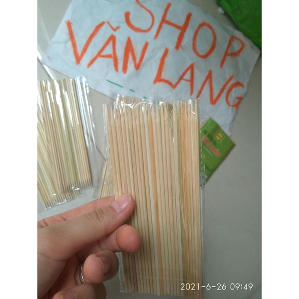 Tăm xiên dùng để xiên thịt chiên xúc xích- Mỗi que xiên có đường kính 3 mm với độ dài 15cm
