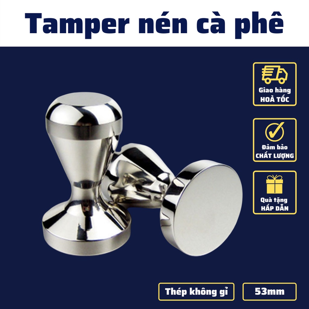 Tamper 53mm dụng cụ tay nén cà phê pha Espresso cafe Arabica Inox cao cấp tay nén café đường kính 49-51-53-58m+ Chất Liệu : Inox 304 Cao Cấp