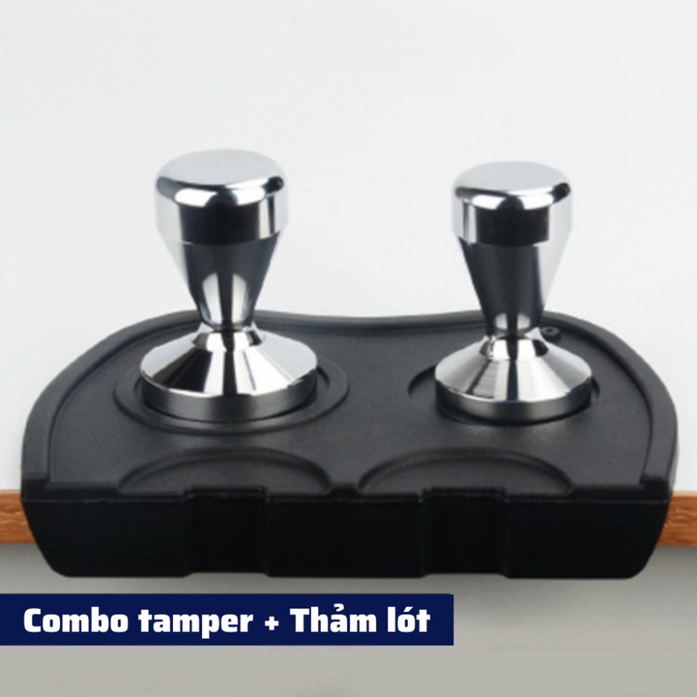 - Chất liệu tay nén: các tamper để nén cà phê espresso nên làm bằng kim loại inox (một số loại bằng nhựa), cầm chắc tay, bề mặt nhẵn bóng, không sứt mẻ hay rạn nứt.