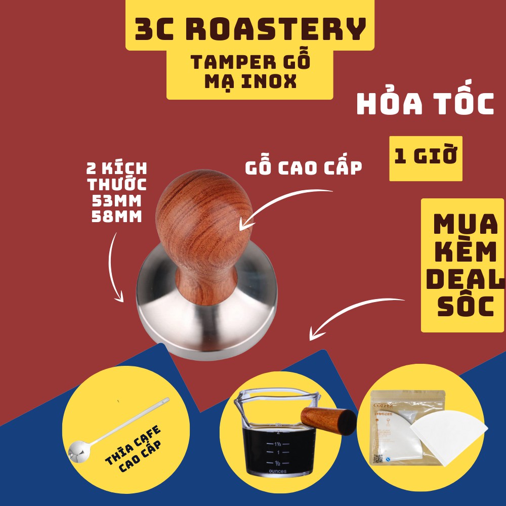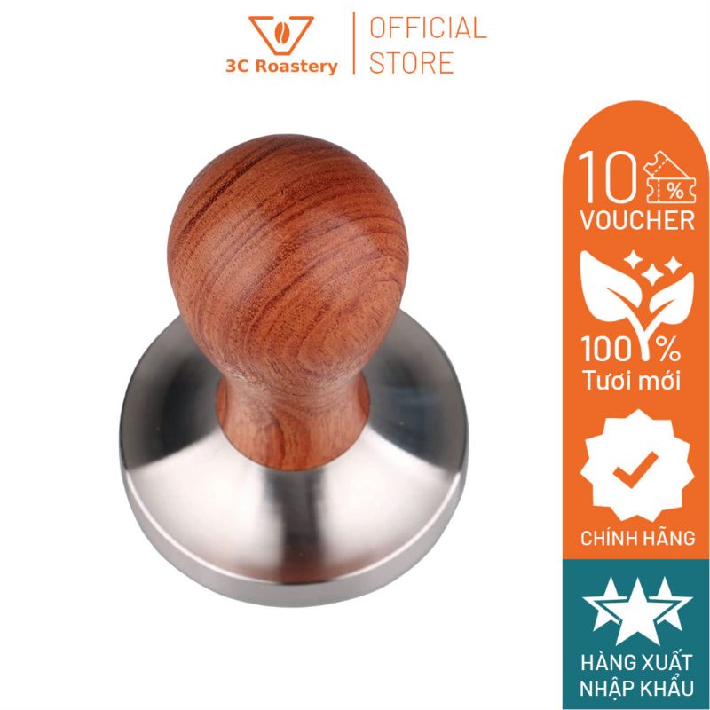 Tamper nén cà phê size 53(58) mm 3C ROASTERY dụng cụ pha chế chất liệu cán gỗ trụ thép không gỉ