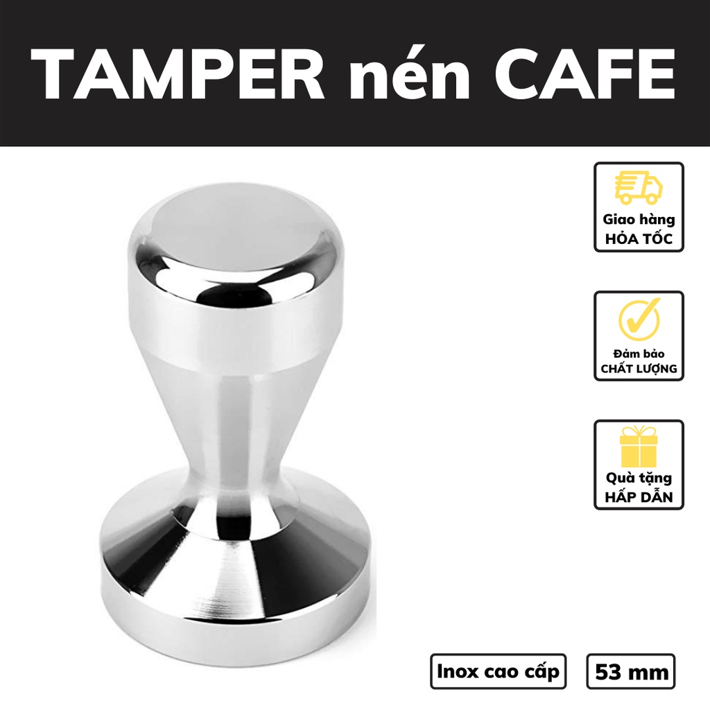 Giới thiệu Tamper nén cafe 53 mm dụng cụ pha cà phê Espresso inox 304 bền bỉ trọng lượng 640 - 700g đường kính 51 - 53 - 58 mm