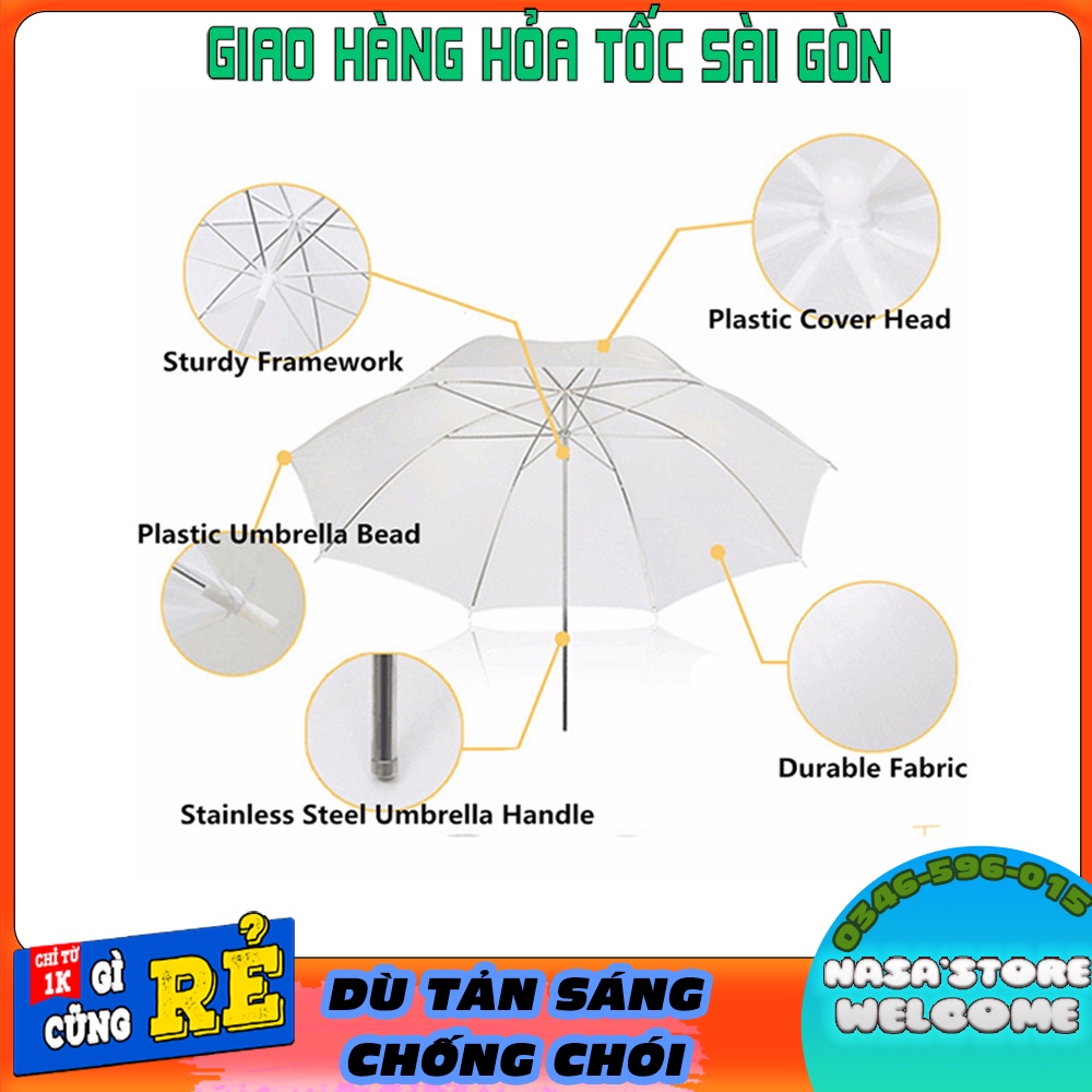 Dù tản sáng làm mềm mịn ánh sáng có hỗ trợ chụp ảnh cho studio- Dù có màu trắng sữa khi ánh sáng gắt đi qua dù sẽ làm dịu lại ánh sáng khi bạn chụp ảnh sẽ làm bức ảnh trở nên sống động hơn.