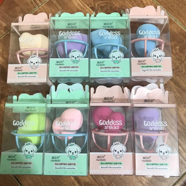 Bông tán nền hồ lô có giá đỡ HanBeiEr siêu cuteMút có thiết kế dễ thương, có 1 đầu hình bầu tròn và 1 đầu hình nhọn giúp dễ dàng tán kem nền lên những vùng như má, trán, cằm, khoé mắt, khoé mũi, miệng Chất mút rất dai và tán kem rất mịn, có