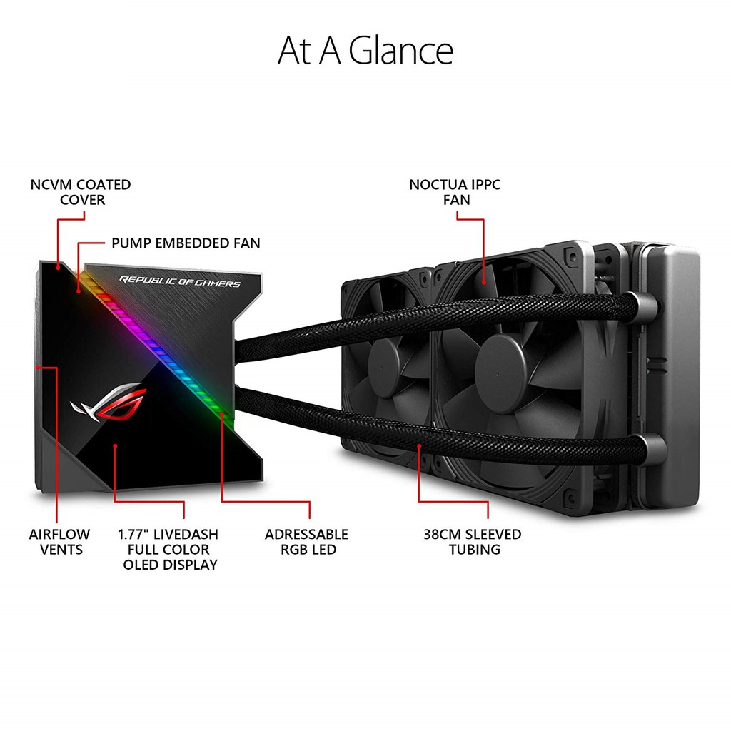 ✔️Tản nhiệt CPU Asus ROG RYUO 240ROG Ryuo là một dòng tản nhiệt CPU bằng chất lỏng hiệu suất cao được thiết kế cho các giàn máy chơi game nhỏ gọn và kích thước vừa phải. Hệ thống làm mát CPU đầu tiên từ ROG, dòng tản nhiệt Ryuo mang lại hiệu suất, tính năng với thiết kế chi tiết mà bạn hằng mong đợi từ ROG, mang đến một phần không thể thiếu trong cỗ máy chơi game của bạn. Được trang bị màn hình OLED màu LiveDash 1,77 inch hỗ trợ theo dõi số liệu thống kê hệ thống theo thời gian thực cũng như hiển thị hình ảnh hoặc hoạt ảnh cá nhân hóa, ROG Ryuo không chỉ đảm bảo hiệu suất của hệ thống mà còn mang lại vẻ thẩm mỹ tuyệt vời nhất cho cỗ máy. Cùng với sự hỗ trợ Aura Sync để đồng bộ các hiệu ứng đèn RGB, tản nhiệt ROG Ryuo mang lại vẻ thẩm mỹ độc đáo cùng với hiệu suất thay đổi game.