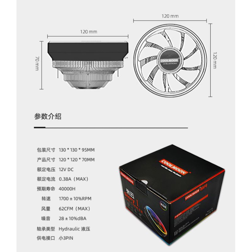 Máy tính & Laptop > Linh Kiện Máy Tính > Quạt và Tản Nhiệt || TẢN NHIỆT CPU COOLMOON GLORY I LED RGBCòn hàng