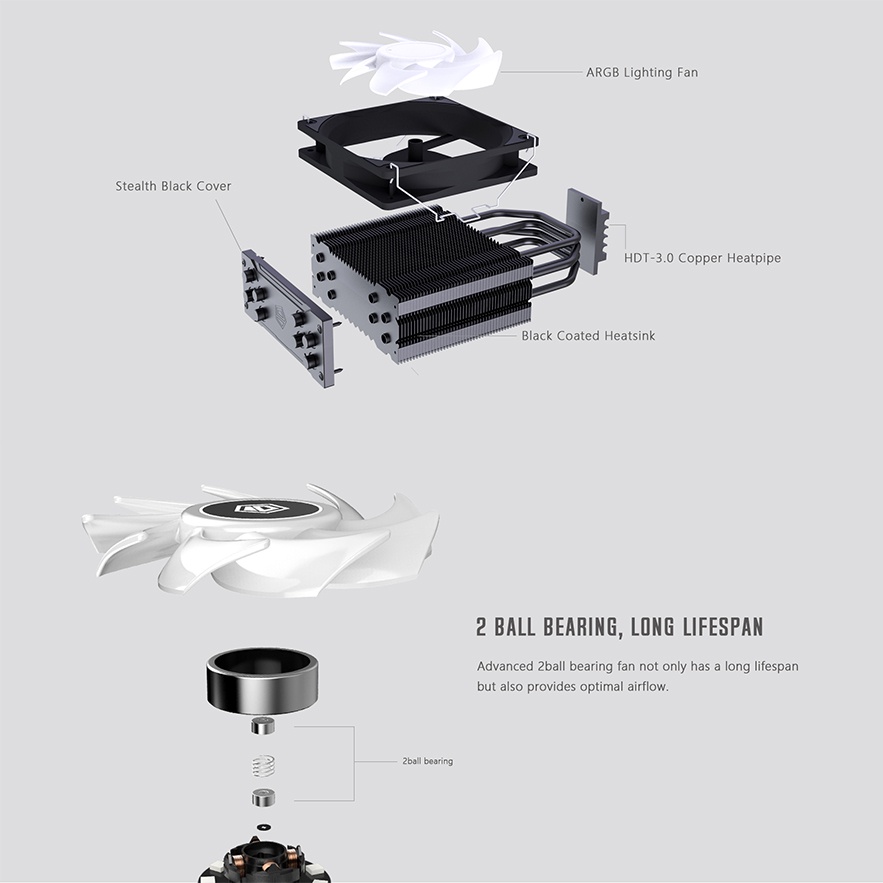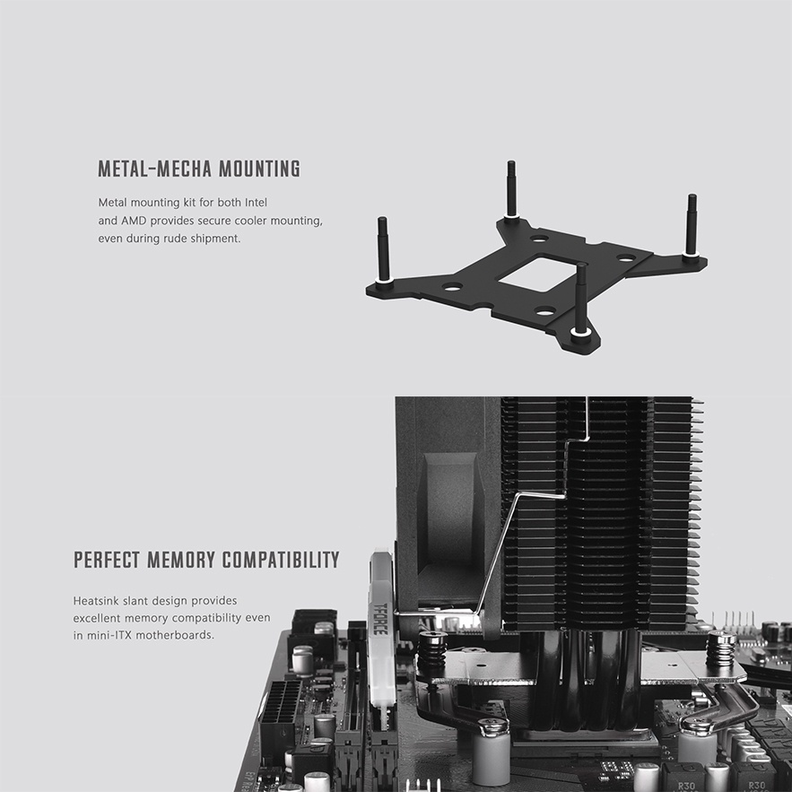 - Chất liệu lõi tản kim loại: 4×Ф6mm Heatpipe(Direct Touch)+Aluminum Fin