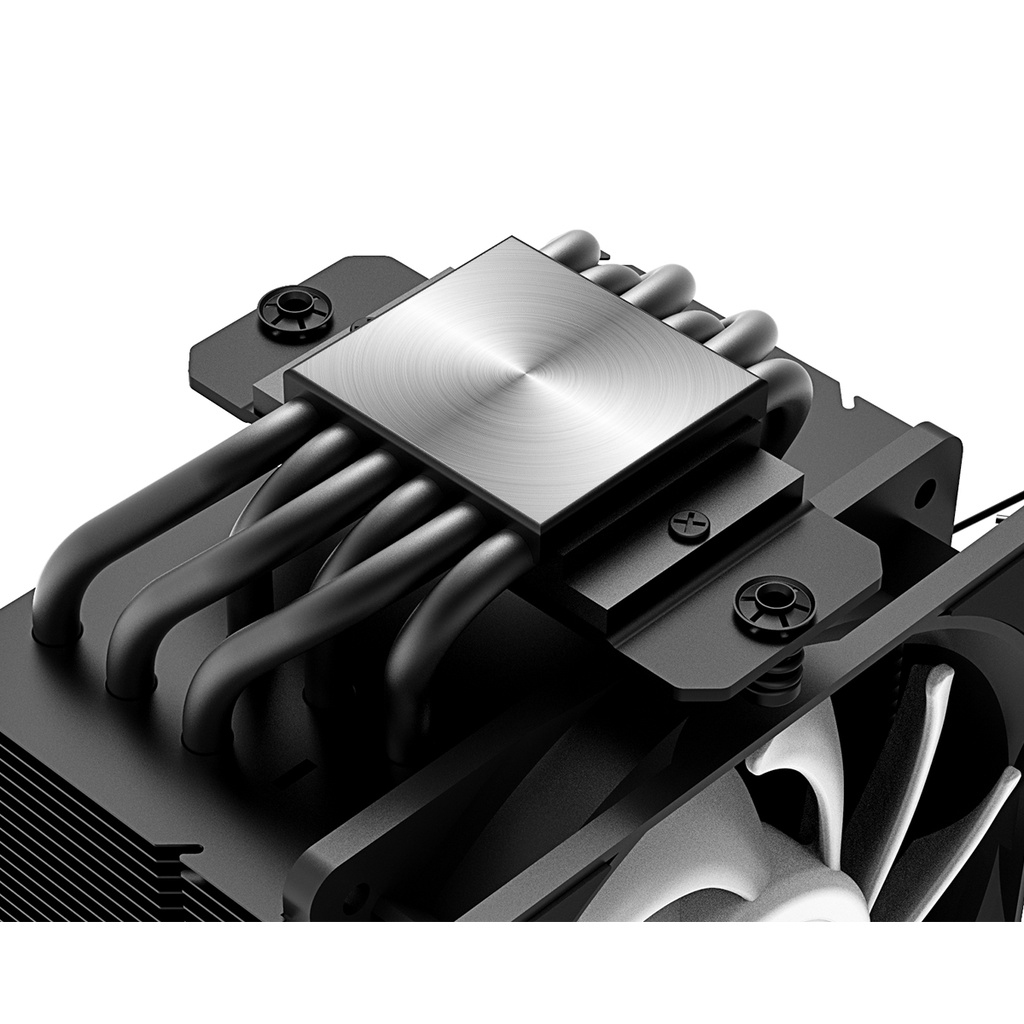 - 6 ống đồng, sơn đen tĩnh điện, mặt tiếp xúc CPU làm từ đồng nguyên khối, có top cover thiết kế phay xước chắc chắn