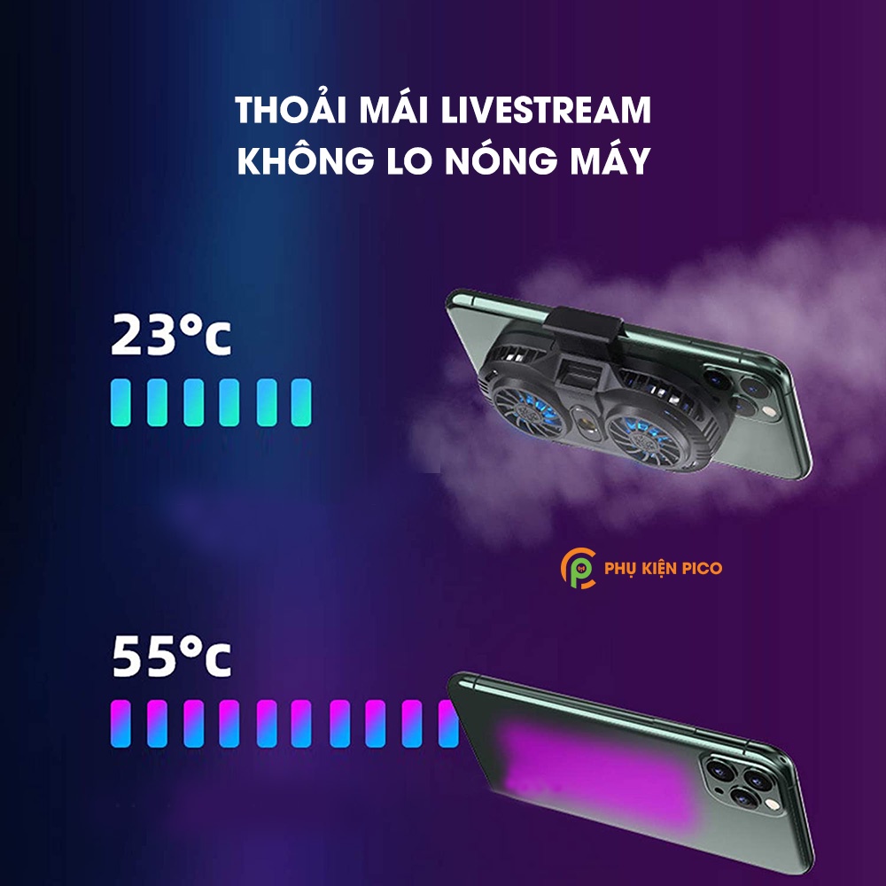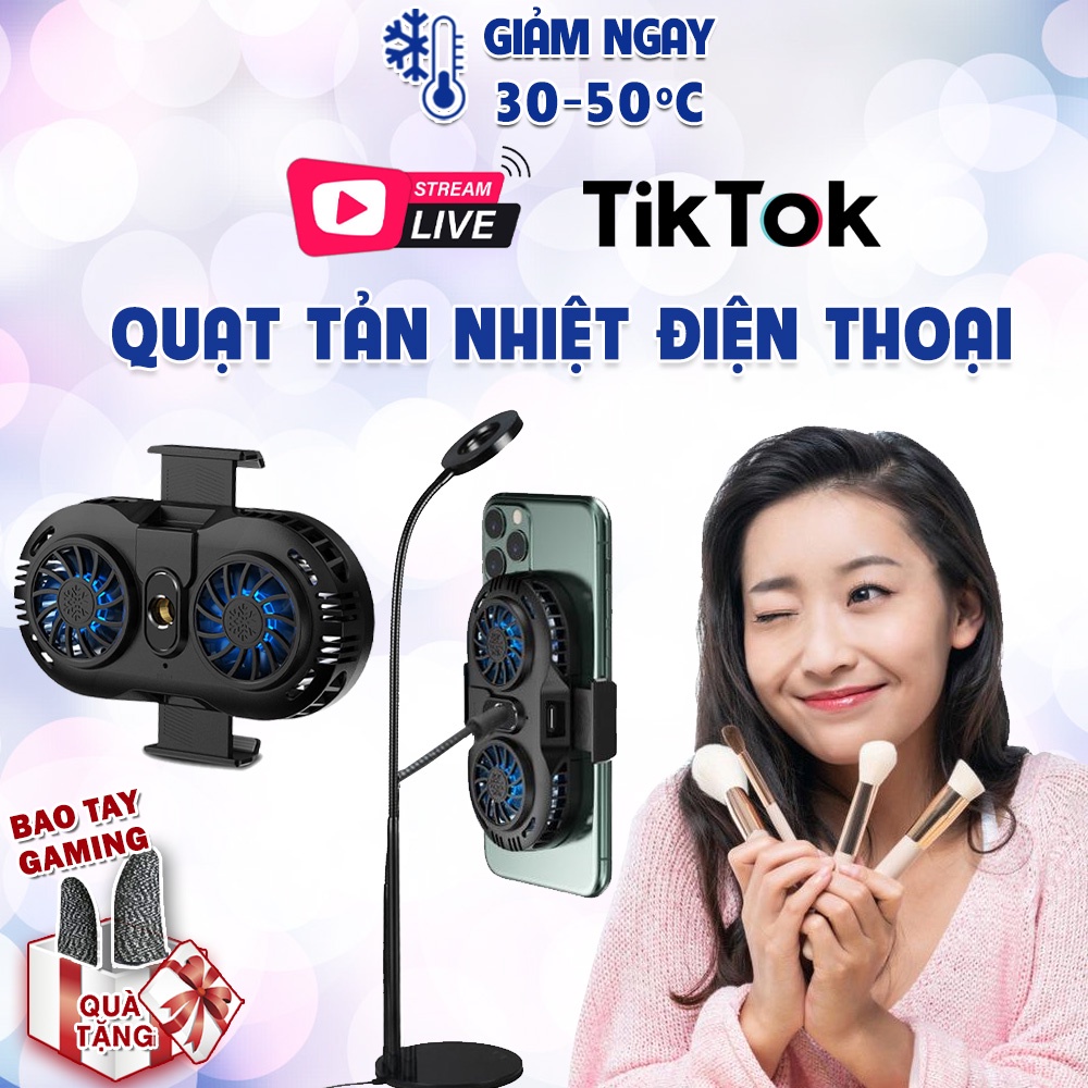 Tản nhiệt điện thoại Livestream quạt sò lạnh kép AH102, Kẹp điện thoại tản nhiệt chơi game, hỗ trợ chân đế giá đỡ Livestream, Quay video tiktokAH102 là phụ kiện không thể thiếu của các Streamer Tiktoker chuyên nghiệp, giúp điện thoại không bị nóng lên khi chơi game hoặc livestream hoặc quay video tiktok thời gian dài, giúp kéo dài tuổi thọ của pin, cũng như các linh kiện của máy (như màn hình, camera, vi xử lý, loa...).