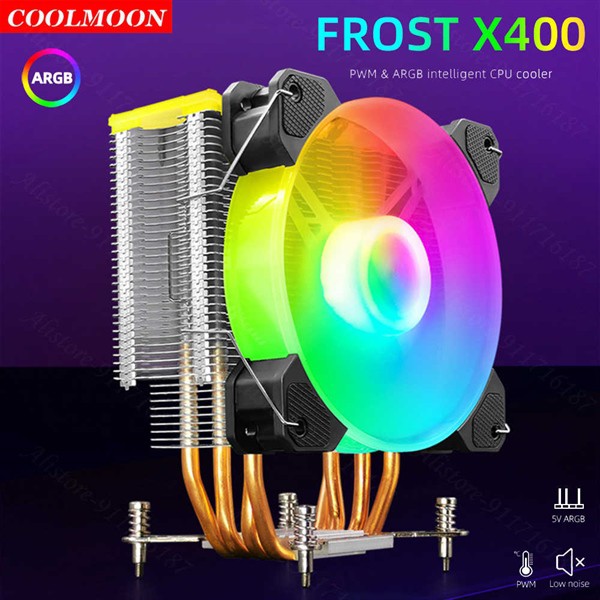 Tản nhiệt khí Coolmoon Frost X400 - 4 Đồng Nhiệt - ARGB (Hydro Bearing / 18~28.8 dBA / INTEL/ AMD)