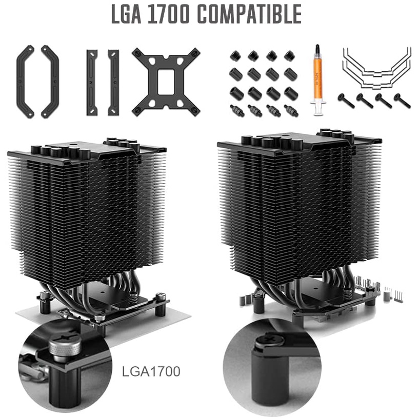 ✔️ Trang bị 6 ống đồng nguyên chất, sơn đen tĩnh điện, mặt tiếp xúc CPU làm từ đồng nguyên khối, có top cover thiết kế phay xước chắc chắn.