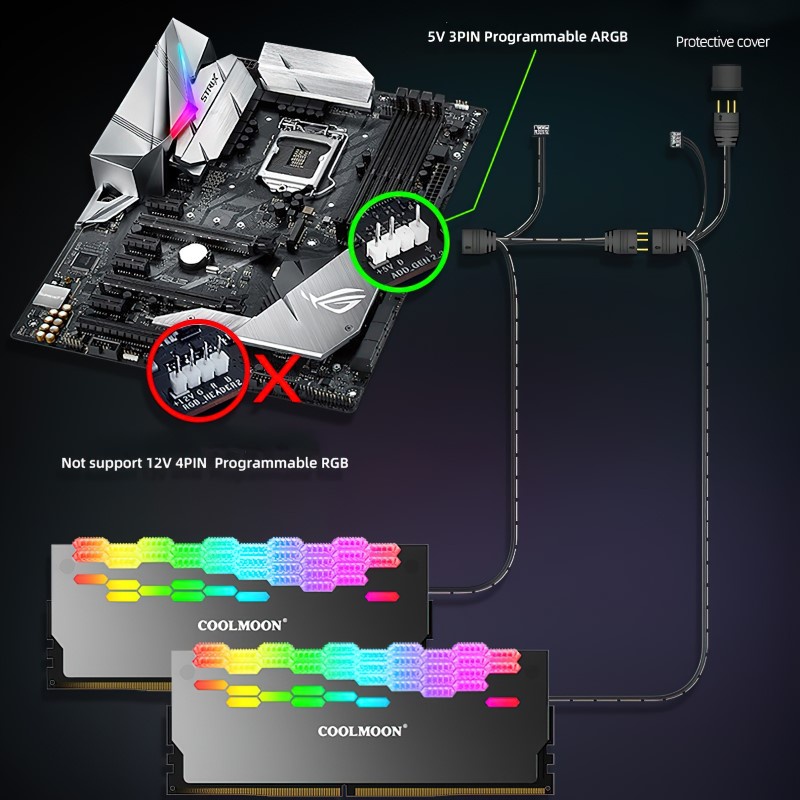 - Hỗ trợ Sync đồng bộ với hub Coolmoon qua chân 4pin nhỏ