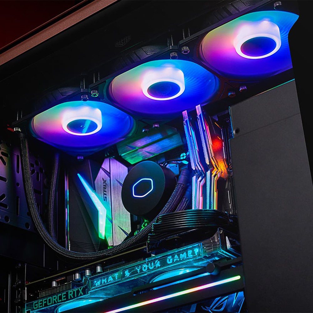 - THỂ HIỆN ĐÈN LED ARGB ĐẦY ĐỦ: Trải nghiệm phương pháp làm mát đầy màu sắc với cụm bơm và quạt ARGB tương thích với tất cả các hãng sản xuất bo mạch chủ lớn để đồng bộ điều chỉnh hiệu ứng bằng phần mềm