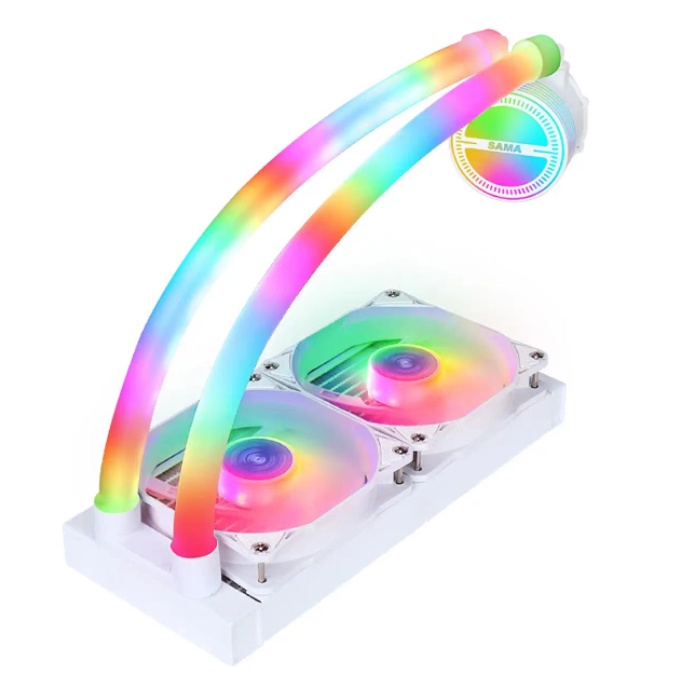 Bộ tản nhiệt nước AIO CPU Sama 240mm, ống dẫn tích hợp đèn led ARGB, đồng bộ màu với mainboard, hub coolmoon.Dòng sản phẩm tản nhiệt nước AIO mới nhất của Sama.