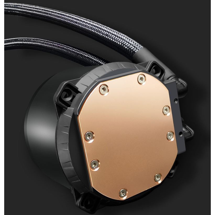 - Block CPU mặt tiếp xúc bằng đồng giúp tản nhiệt tốt hơn, mặt trên đc trang trí bằng vòng led RGB và logo Coolmoon cực chất.