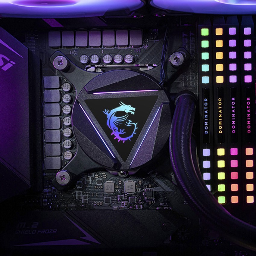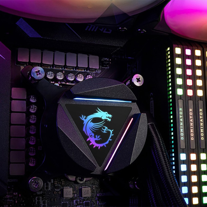 --> Tính năng nổi bật: Phần Block với hệ thống LED ARGB và logo rồng MSI phát sáng độc đáo, Block có thể xoay được để phù hợp với hướng bố trí linh kiện. Pump tích hợp với Rad giảm tiếng ồn đồng thời phân tách Pump khỏi nguồn nhiệt giúp tăng tuổi thọ.