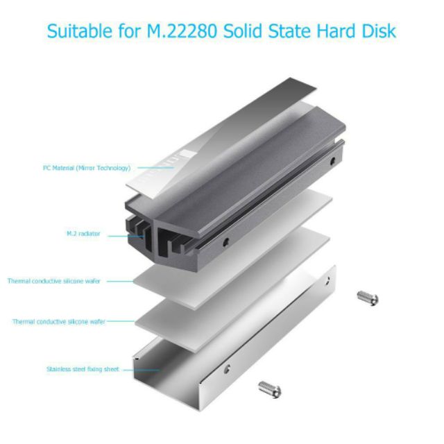 1. Tấm wafer silicon dẫn nhiệt chất lượng cao, tiếp xúc hoàn toàn với ổ SSD, nhanh chóng tiêu thụ nhiệt qua bộ tản nhiệt hoàn toàn bằng nhôm.