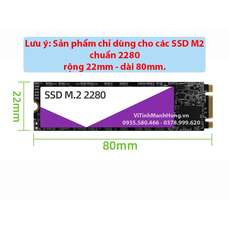 * Lưu ý: Sản phẩm chỉ dùng cho các SSD M2 / NVME chuẩn 2280 ( rộng 22mm - dài 80mm ).