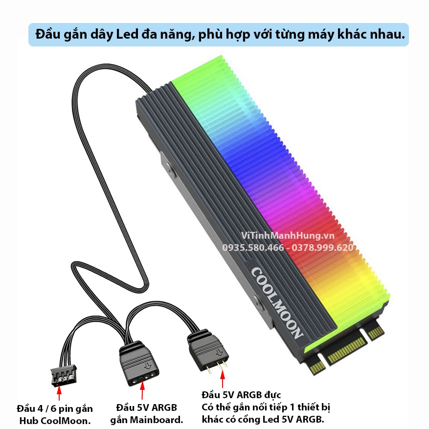 Giới thiệu Tản nhiệt SSD M2 2280 CoolMoon CM-M2A, Led 5V ARGB, đồng bộ Hub CoolMoon hoặc Mainboard.