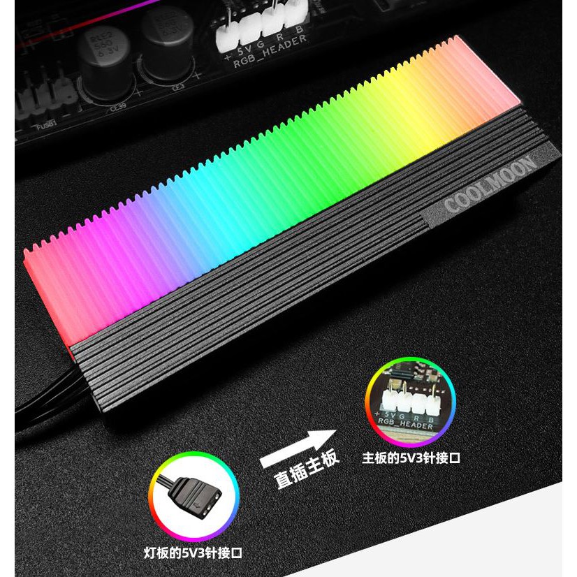 Tản Nhiệt SSD M2 Led RGB Coolmoon - Hỗ Trợ Đồng Bộ Hub Coolmoon và Mainboard