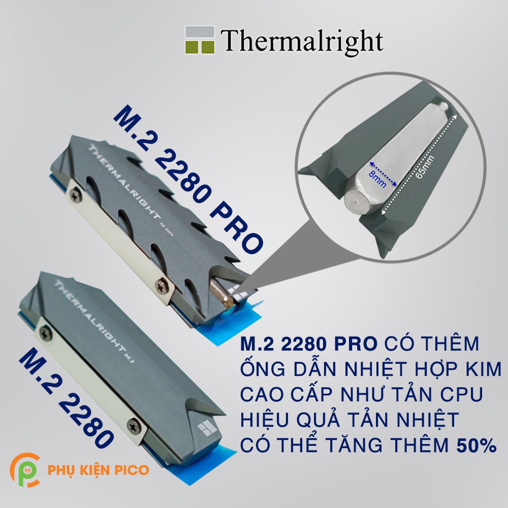 - Ống dẫn nhiệt hợp kim cỡ lớn giúp Thermalright M2 2280 Pro tăng hiệu năng tản nhiệt lên đến 50% so với Thermalright M2 2280 tiêu chuẩn.