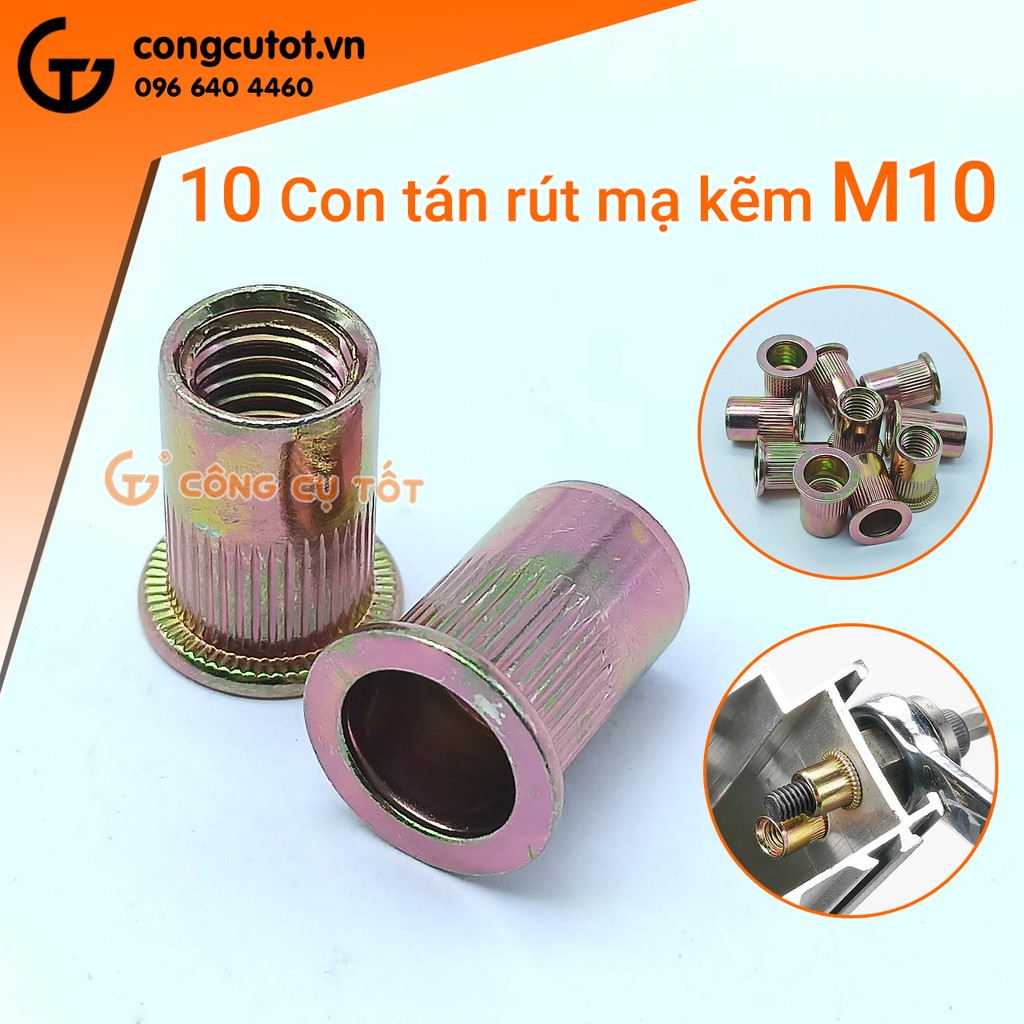 Tán rút mạ kẽm 7 màu M10 chuyên tạo ren trên thép, nhôm, gỗ...